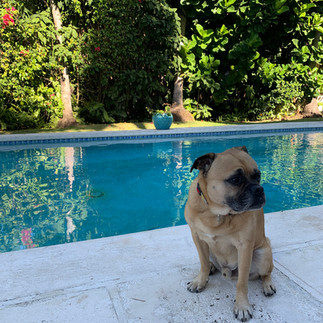 The views from my towel are glorious and hilarious - Mother Nature provides the beauty and our dog, Maxx, the entertainment.